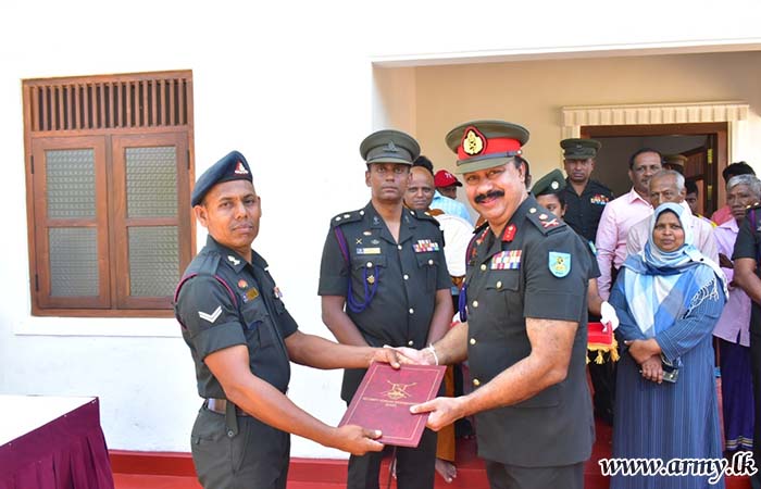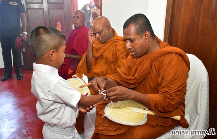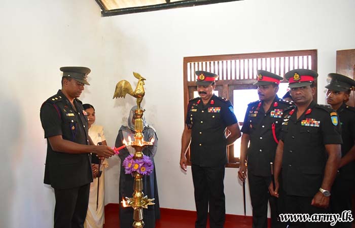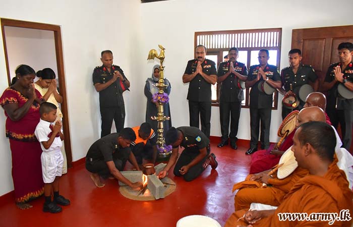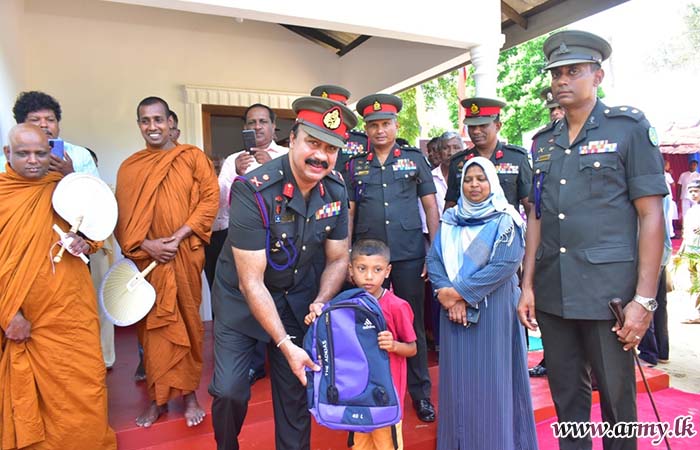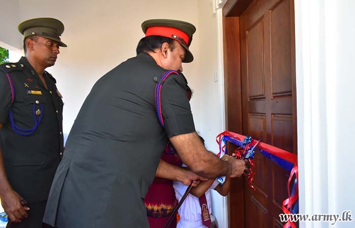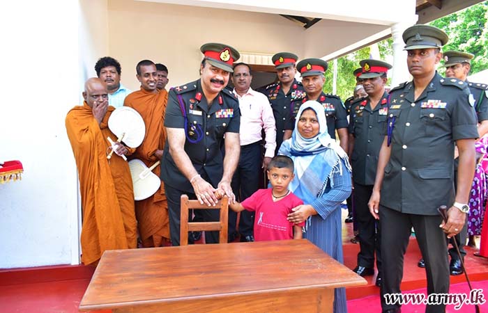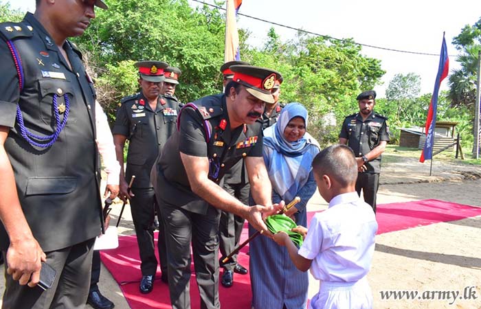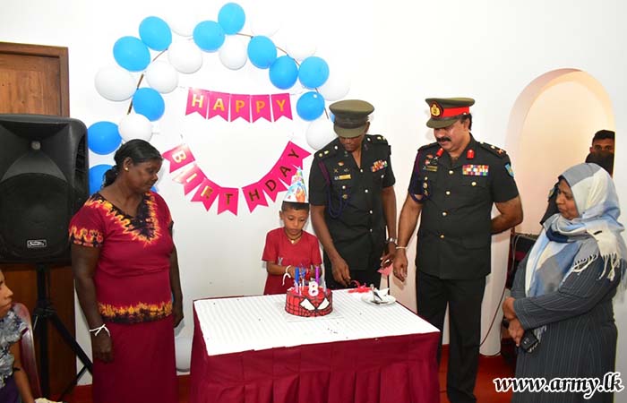 Major General Prasanna Gunaratne RSP ndu psc IG, the Commander Security Forces – East as the Chief Guest graced the house – warming ceremony and handed over the keys to the child on his birthday in a simple ceremony. Divisional Secretary in Welikanda, senior army officers and civil officials were among the invitees. The family also received gift parcels including school accessories, home appliances and food items on the same occasion as incentives.