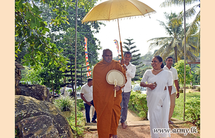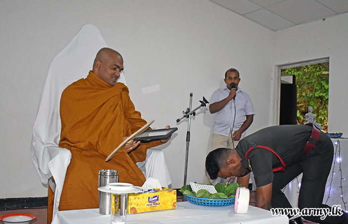 Ven Walpola Gothama Thero delivered the Dhamma sermon and the subsequent Dhamma session. The Commanding Officer, Senior Officers, Officers and Other Ranks of 2 (V) SLAMC took part in the programme.