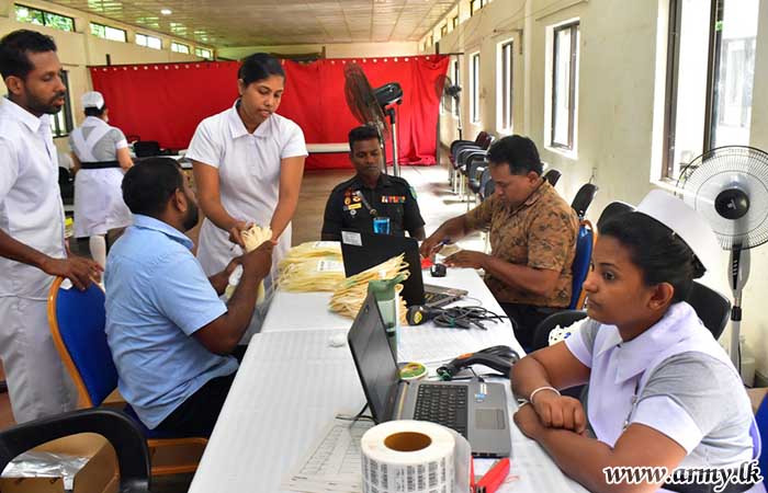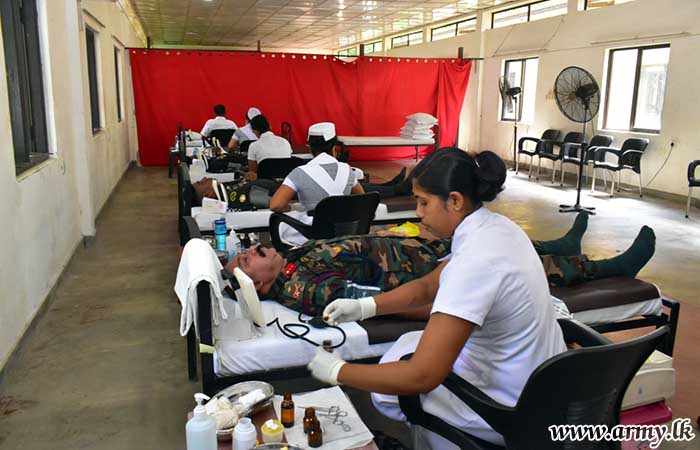 To coincide with the 20th Anniversary commemoration of the Security Forces Headquarters - East in close co-operation with the Blood Bank at Polonnaruwa Hospital, 100 Officers and Other Ranks offered their blood for the benefit of patients on Thursday (2) during a blood donation programme, held at the SFHQ-East.