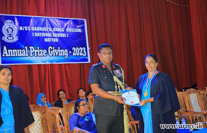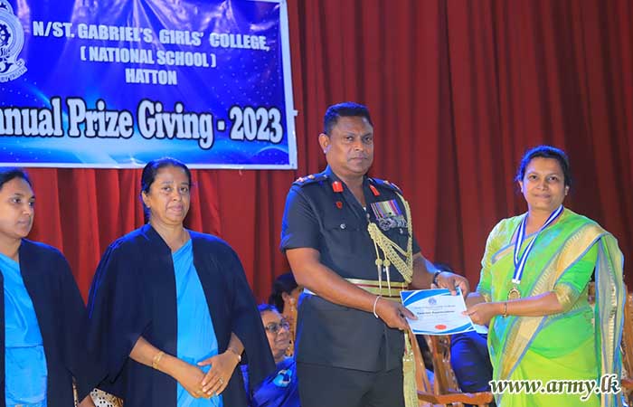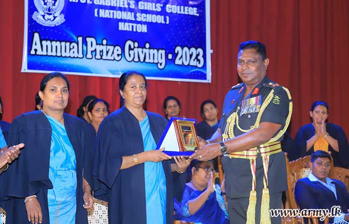 Major General M.T.K.R Silva KSP, Deputy Commandant, Sri Lanka Army Volunteer Force (SLAVF) graced the annual prize-giving ceremony at St. Gabriel's National Girls' College, Hatton as the chief guest on the invitation of Mrs. H.W.D. Weerathunga, Principal of the College on (Monday) 30 October 2023.