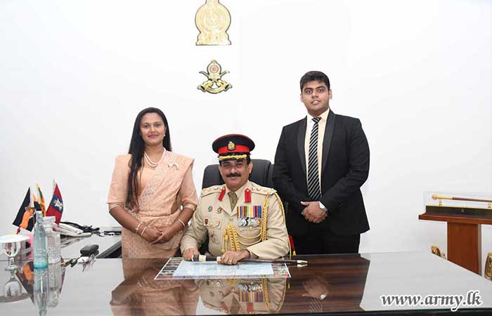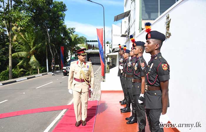 A formal Guard Turnout presented by SLAOC troops greeted him. Subsequently, a floral tribute was paid at the fallen War Heroes’ monument and he planted a sapling at the RHQ premises.