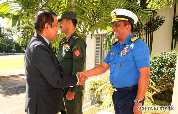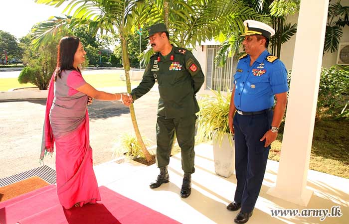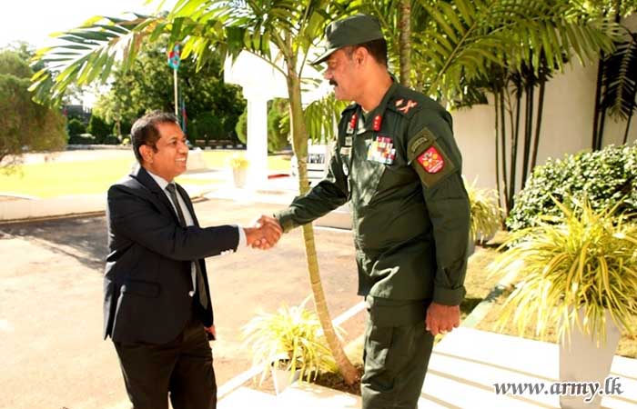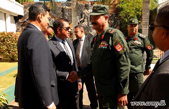 The visiting Ambassadors and High Commissioners were warmly welcomed by the Commander, Security Forces - Jaffna, Major General S.R.K Hettiarachchi RWP RSP VSV USP ndu psc on their arrival at the SFHQ-J.