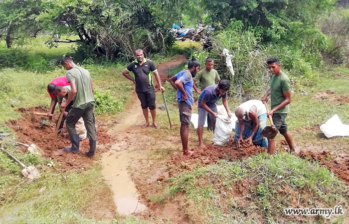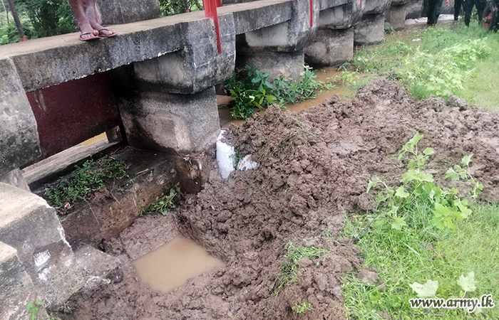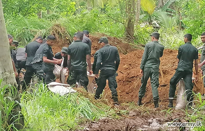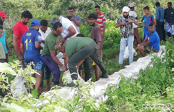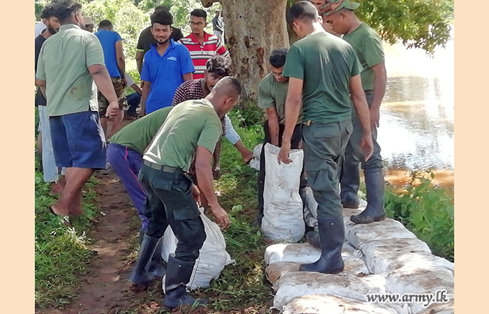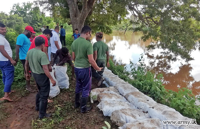 At the same time, 11 soldiers of the 9 (V) CES Regiment took prompt action and averted a major split on the Bogaha Wewa tank by placing more than 50 sand bags.