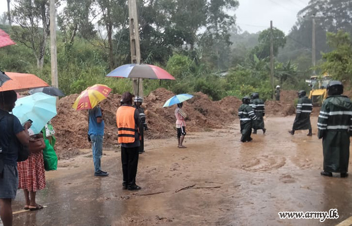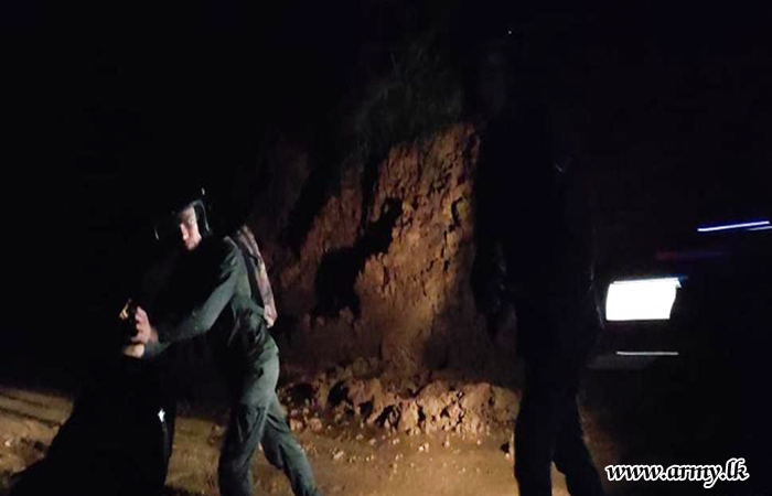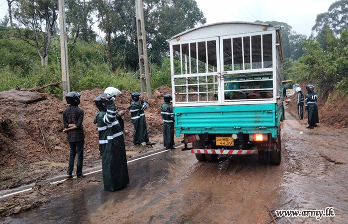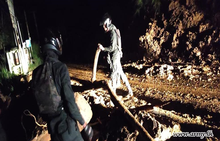 Troops of the Security Force Headquarters - Central (SFHQ-C) swiftly jumped into action and cleared a road patch that had been blocked by an earth mound along the Haputale - Colombo road near Beragala, Bathalegoda area on Monday (6 Nov).