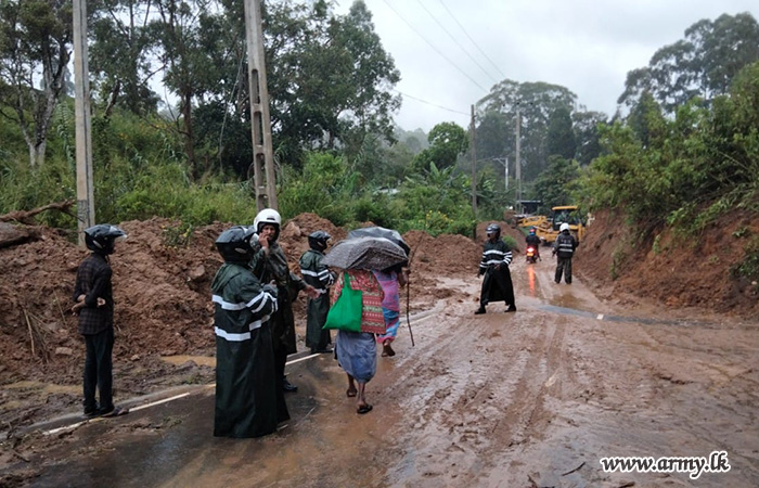 Troops with the support of Road Development Authority personnel cleared the blockage at Beragala, Bathalegoda and restored vehicle movement along Colombo - Haputale main road.