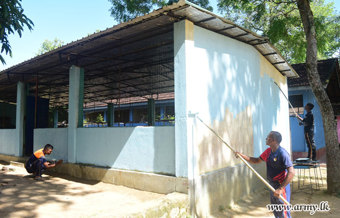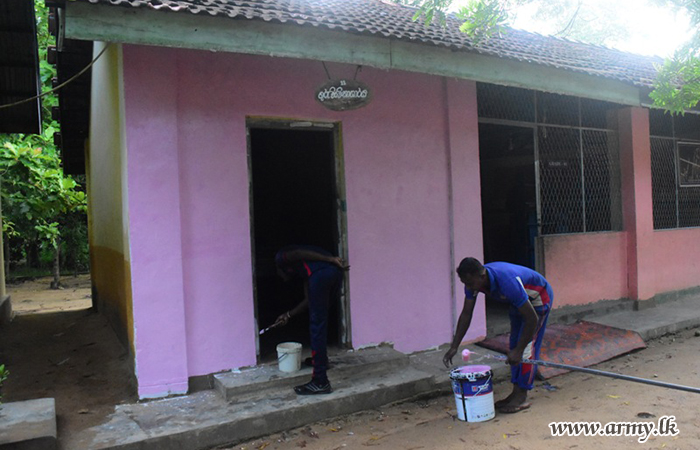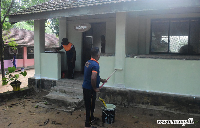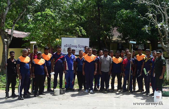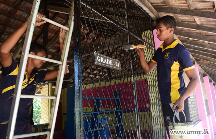 14 Sri Lanka Sinha Regiment, 18 VIjayabahu Infantry Regiment, 11 (V) Sri Lanka Sinha Regiment, 8, 11 and 16 Sri Lanka National Guard and Corps of Engineer Service Regiment troops within two days (4 - 5 November) completely repainted all the buildings and repaired the damages in the infrastructure of the school.
