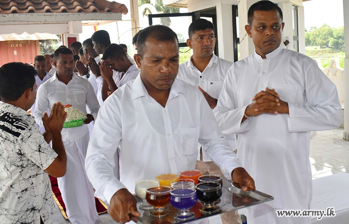The ceremony organized under the guidance of Major General S.R.K Hettiarachchi RWP RSP VSV USP ndu psc, Commander, Security Forces Jaffna, and Major General R.K.N.C Jayawardena RSP ndc, General Officer Commanding, 55 Infantry Division was made a reality by the Commander 552 Infantry Brigade. The offer of ‘Atapirikara’ to the monk and blessings were invoked on the Army its troops.