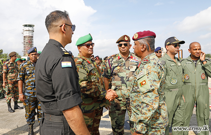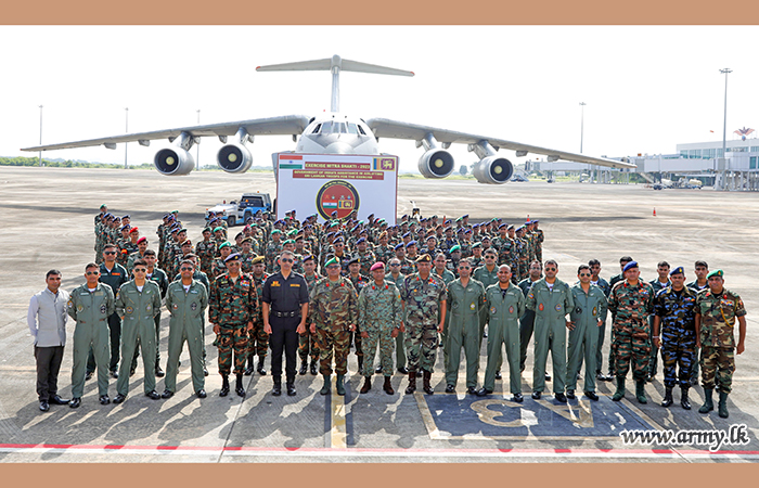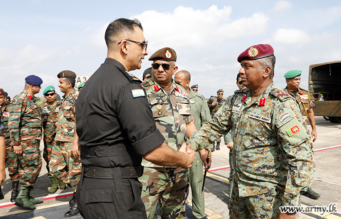 The Sri Lankan Army contingent, led by Major General P.G.P.S Rathnayaka RWP RSP ndc, General Officer Commanding, 53 Infantry Division as the Exercise Overall Coordinator, Colonel M.J Ubeysekera RSP psc, Exercise Director, Colonel B.Y Nanayakkara RSP psc, Exercise Deputy Director and Colonel R.M.S Ranasinghe, Exercise Log Command will meet their counterparts of the Indian Army and participate in this friendly Exercise.