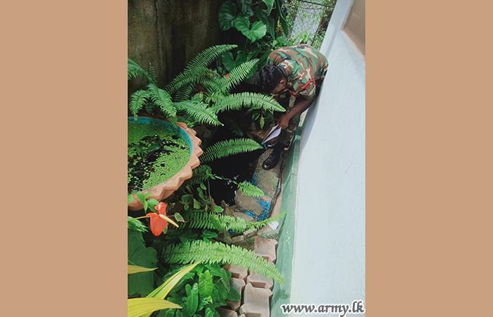 Fifteen Army groups of the 2 (V) Sri Lanka Light Infantry, in collaboration with 10 Public Health Inspectors and health employees from Gothatuwa, actively participated in the project. As a result, approximately 150 houses were inspected, and immediate measures were implemented to eradicate Dengue mosquito breeding sites.