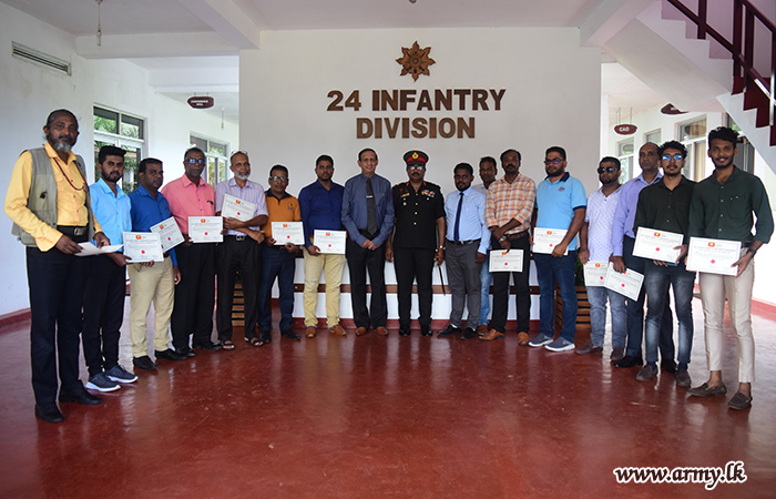 The General Officer Commanding, 24 Infantry Division, Major General W. Chandrasiri RSP USP psc coordinated the deliberations and set out the scope of the symposium, making introductory remarks before the sessions commenced. Towards the end of the sessions, all participating Media personnel were awarded certificates of attendance to all Media personnel by both the GOC and the lecturer.
