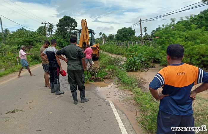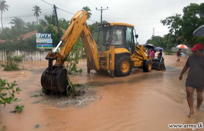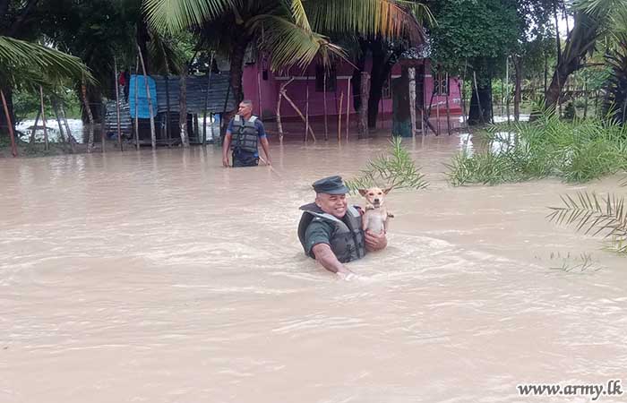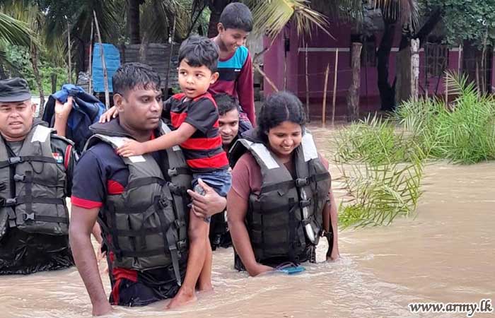 Troops engaged in evacuation, relief, relocation and clearing of the Ananthapuram canal to mitigate the flood levels while coordinating with Divisional Secretariats, and the Disaster Management Centre.