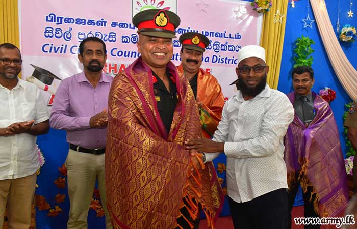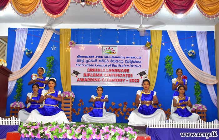 Major General M.K.U.P Gunaratne RSP ndu psc IG, the Commander, Security Forces - East (SF-East) as the Chief Guest attended the ‘Sinhala Language’ diploma awarding ceremony for Tamil speaking youths, held on Saturday (18) at Oddamawadi National School in Batticaloa at the invitation of the Chairman, Civil Citizens' Committee (CCC), Batticaloa.