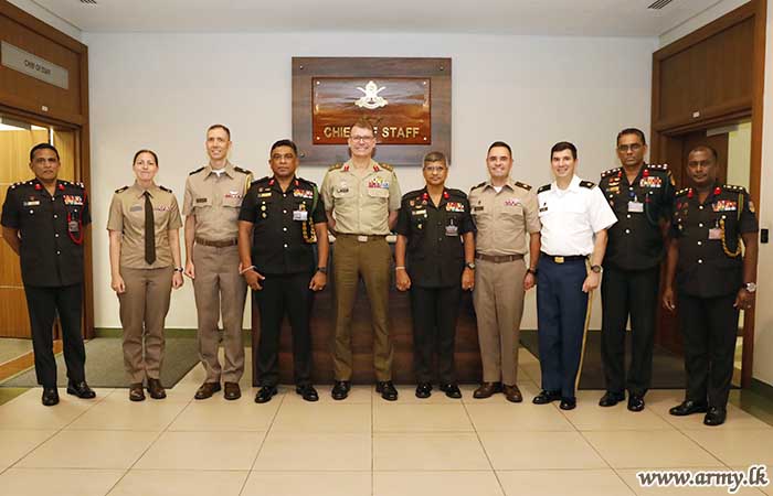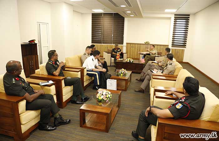 Major General Chris Smith, Deputy Commanding General - Strategy and Plans of the U.S. Army Pacific Command (USARPAC) in Fort Shafter in Hawaii currently in Sri Lanka, together with Lieutenant Colonel Anthony C. Nelson, Defence Attaché of the US Embassy in Colombo, Major Benjamin Flores, Major Omar Cavalier and Captain Caitlin Pennicooke paid a sudden visit on Major General G.R.R.P Jayawardena RWP RSP ndu, Overlooking Chief of Staff of the Army and Quarter Master General of the Army at the Army Headquarters on Thursday (16 November).