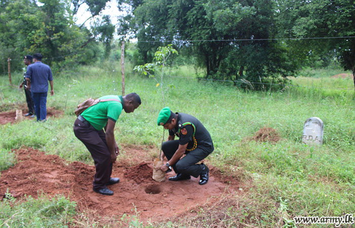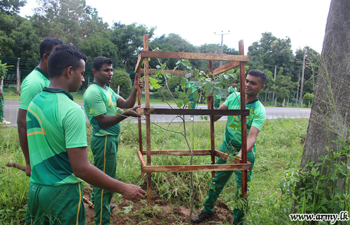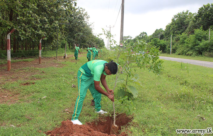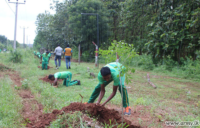 The 'Ruk Ropana' (tree planting) project, initiated by the Forest Department in Puttalam was launched to make main roadsides greener in a bid to boost the forest cover and the environment. Troops alone planted 400 saplings along the roadsides as per the request.