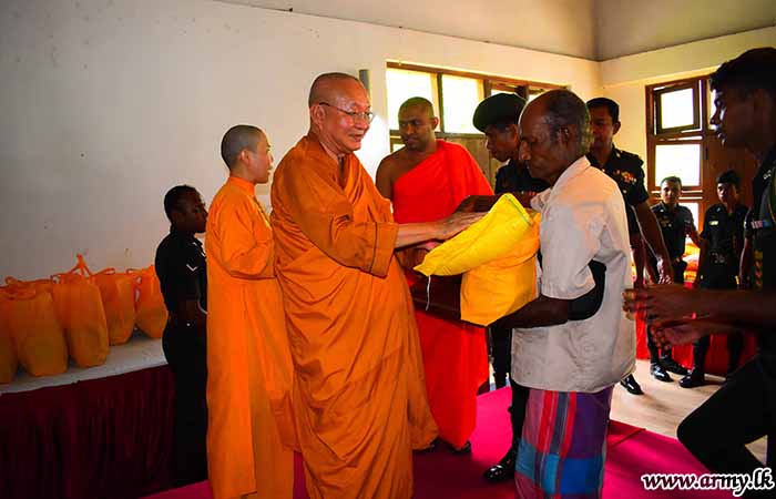 The sponsorship was provided by Ven K. Seelananda Thero at Asgiri Maha Viharaya Kandy (A student of Peradeniya University) with the financial assistance received from a Vietnam delegation, including Ven Samma Jothi Maha Thera and Ven Viyan Therani. Troops supported the arrival of those recipients to the location in consultation with respective Grama Seva officials.