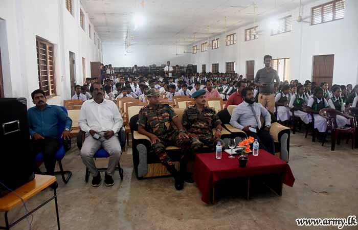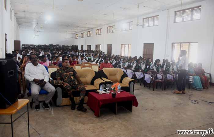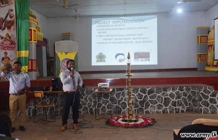 The 23 Infantry Division of the Security Force HQ – East (SFHQ-E) arranged an awareness programme on ‘Dangerous Consequences of Use of Illegal Drugs’ for students and staff of the Vigneshwaram School in Kathiraveli on Tuesday (21 Nov).
