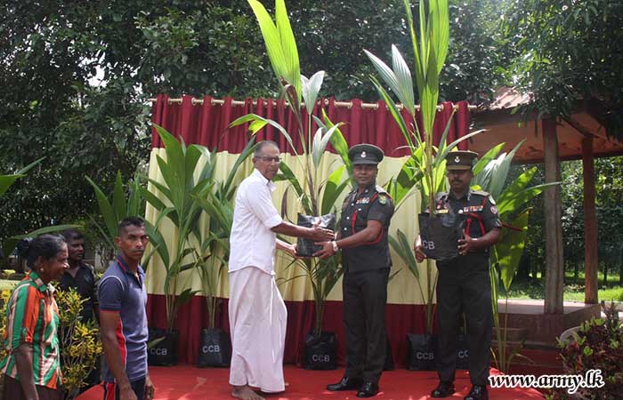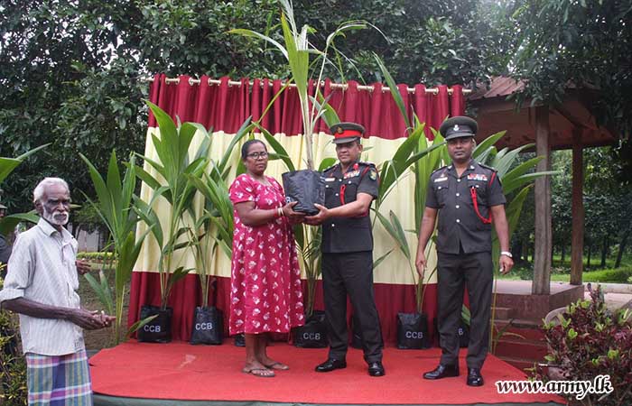 Troops of the 17 Sri Lanka Light Infantry (SLLI) Regiment of the 562 Infantry Brigade of the 56 Infantry Division under command to the Security Force Headquarters - Wanni (SFHQ-W), adding their strength to the earmarked second ‘Coconut Triangle’ in the North distributed 1000 coconut saplings among civilians and farmers in Periyakadu area on Wednesday (Nov 22).