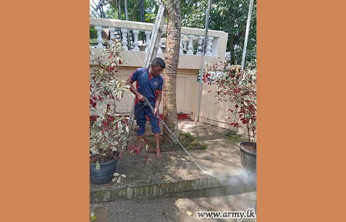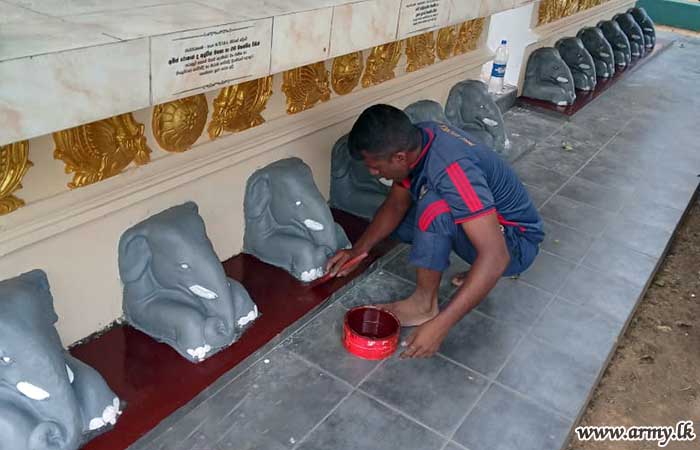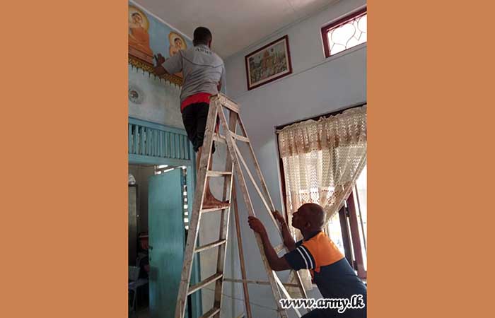 Troops of the 10 Sri Lanka National Guard (10 SLNG) of the 144 Infantry Brigade under the 14 Infantry Division lent their manpower to clean and colour wash the Jayawadanagama 'Maithree Dharmayathanaya' temple in Battaramulla during 25 -26 November on account of the annual ‘Katina Pooja’ preparations.