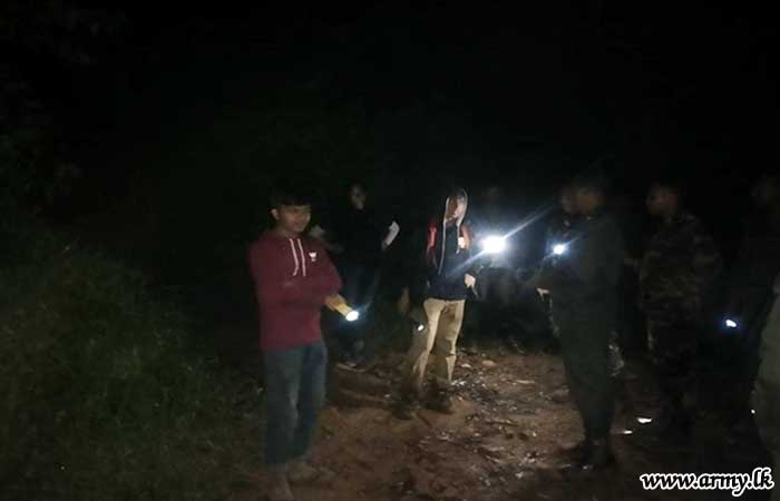 During morning hours at about 4.00 am on Sunday (03), the Army rescue team however managed to screen the exact location and reached those stranded undergrads who had lost their way in the hilly jungles.