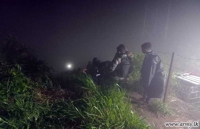 On being informed by the Kandy Police, a 39-member rescue team of the Army quickly moved into the dense jungle-infested Hanthana hilly areas despite inclement weather patterns. However, cloudy weather and thick darkness obstructed their search operations from time to time.