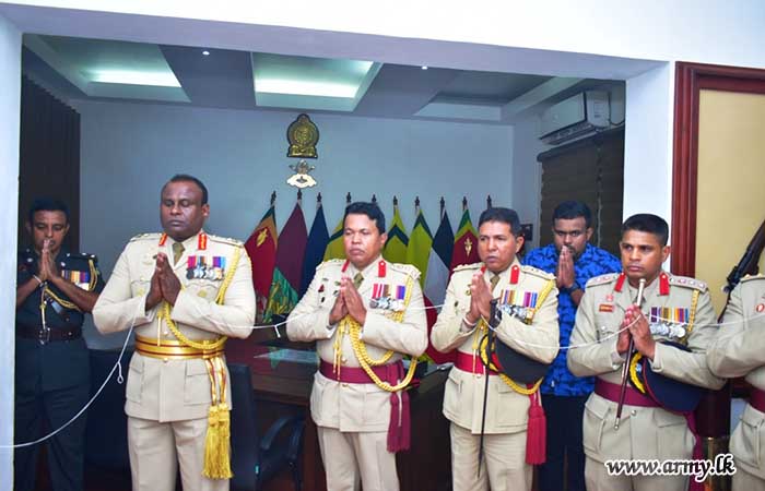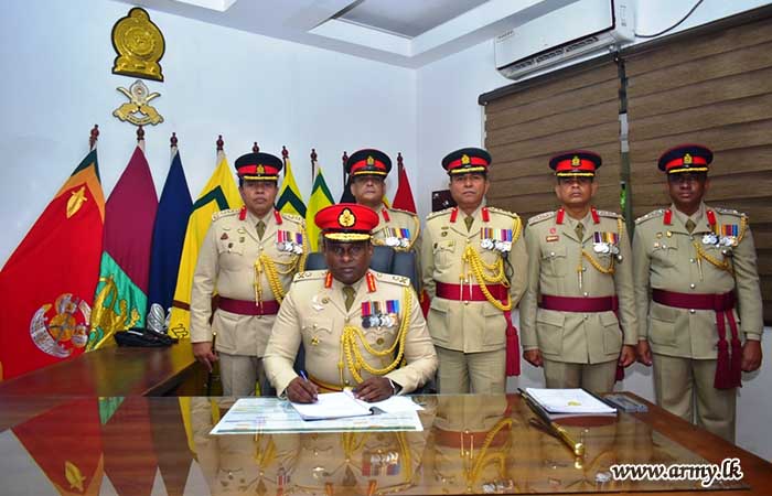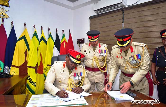 Amid religious blessings and military formalities at the 22 Infantry Division Headquarters in Trincomalee, he symbolically signed an official document to signify the acceptance of his new office. Afterwards, he addressed All Ranks and set out his vision for the Division.
