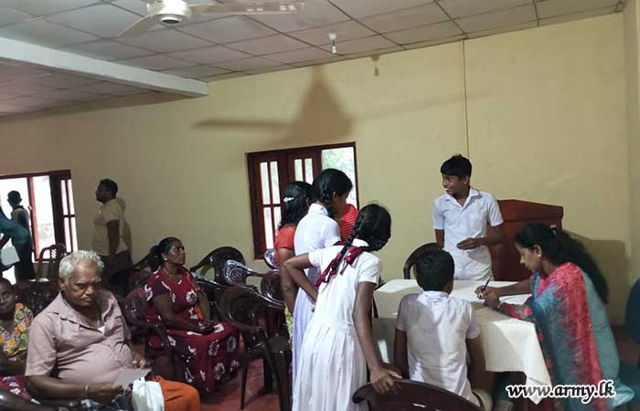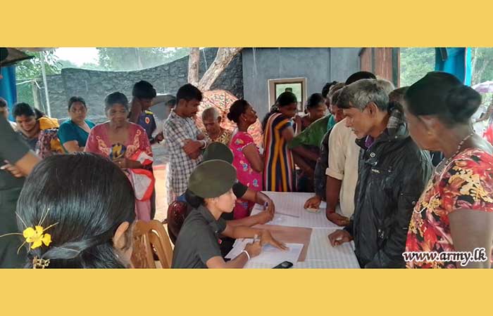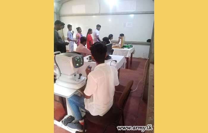 A total of about 200 civilians of low-income group families in Mullaittivu received consultations and treatment during a mobile eye camp, held at the old 593 Infantry Brigade premises following an initiative, taken by Major General M.K Jayawardena RSP VSV USP ndu Commander, Security Forces - Mullaittivu and Major General D.K.S.K Dolage USP psc, General Officer Commanding, 59 Infantry Division with the support of Colonel S.N.M.A.B Arambepola RWP, Commander, 591 Infantry Brigade.