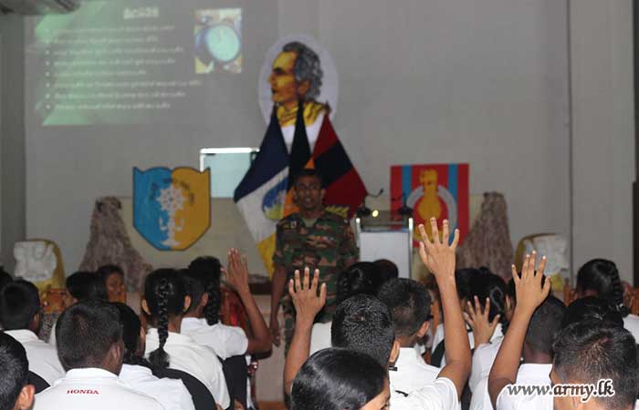 On the request of school authorities at Kottawa North Dharmapla Vidyalaya, troops of the Sri Lanka Army Engineer Division, Mattegoda conducted a leadership training programme for 78 prefects of the Vidyalaya on Tuesday (05) after inviting the prefects to the Sri Lanka Army Engineer Division premises at Mattegoda.