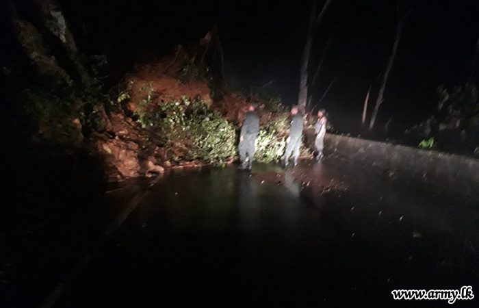 Accordingly, troops, together with Police personnel, Road Development Authority officials and civilians in the area cleared the road and facilitated the resumption of transportation of the road within hours.