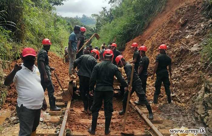 As a result, train operations remained disrupted for hours. Following a short notice, troops under the Security Force Headquarters - Central, headed to affected Haliela area and restored the train operations after clearing the soil mound.