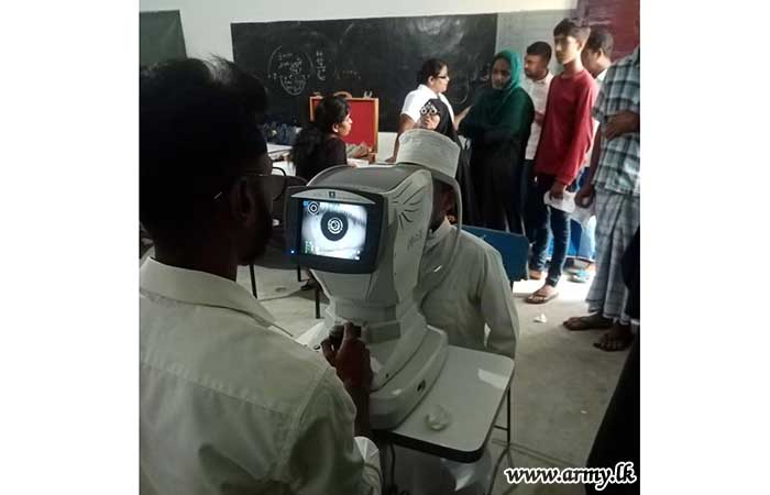 Troops of the 20 Gajaba Regiment (GR) under the 221 Infantry Brigade of the 22 Infantry Division of the Security Force Headquarters - East for the benefit of deserving civilians held a mobile eye clinic and cataract screening programme on 9 December 2023 at Pulmoddai Muslim Central College.