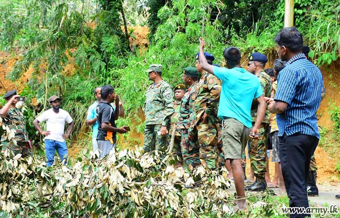 Accordingly, Major General R.M.M Ranasinghe WWV RWP RSP, General Officer Commanding, 11 Infantry Division, along with several Senior Officers visited the location and took measures for evacuation of civilians in vulnerable areas.