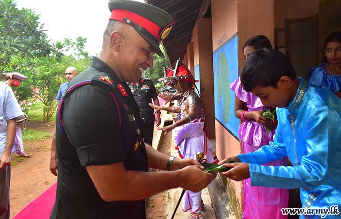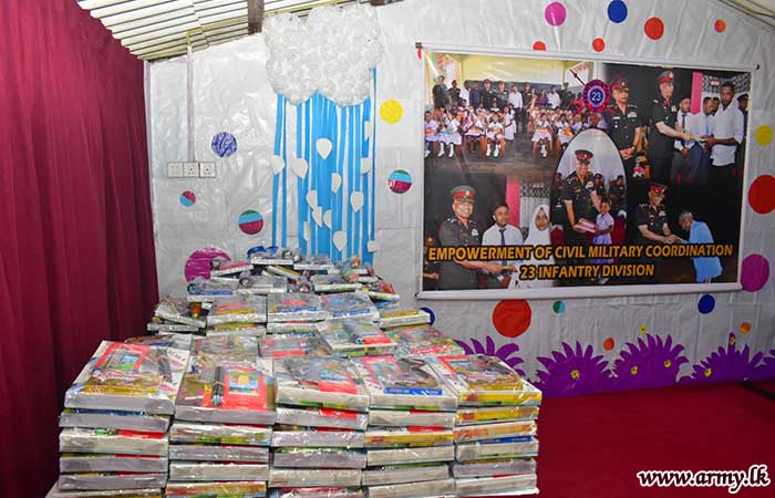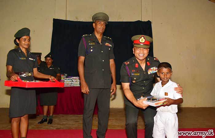 Students at both Sinhapura Kanishta Vidyalaya and Susirigama Primary School in Welikanda extended a hearty welcome to the General Officer Commanding (GOC), 23 Infantry Division, Major General K.V.N.P Premaratne RSP USP psc when he arrived at their schools on Tuesday (12 Dec) to gift educational accessories and books to 323 students of both schools for the year 2024.