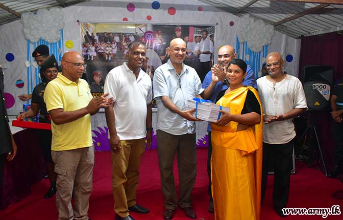In addition, special equipment packs, inclusive of mugs, cutlery, furniture, cups, bulbs and stationery were also donated to both schools by Major General K.V.N.P Premaratne RSP USP psc. Cultural dances and entertaining features performed by both schools while the distribution was on added glamour and colour to the event. After the events, the GOC as the chief guest for the occasion took time off to share a few thoughts with the principals, teachers and beneficiaries in order to learn more about their educational needs and other concerns.