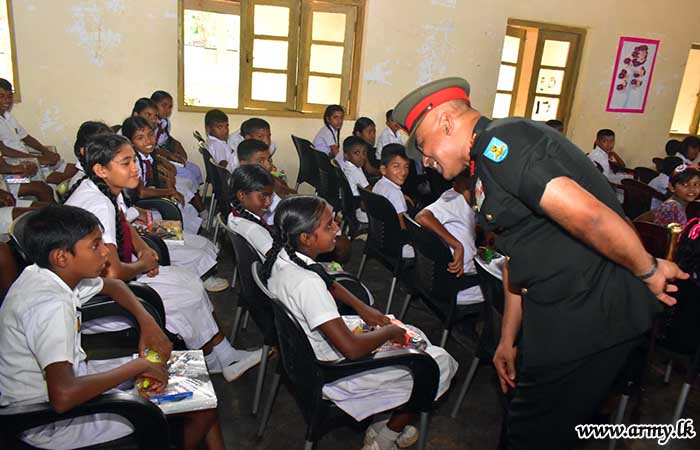 During two separate events, 190 students in Sinhapura Kanishta Vidyalaya and 133 students in Susirigama Primary School received those aid packs, patronized by a group of well-wishers in Colombo area at the request of the General Officer Commanding, 23 Infantry Division.