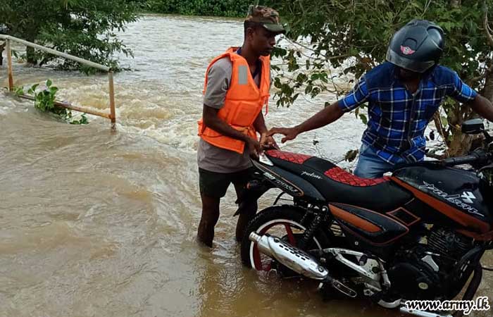 Troops in the 12 Sri Lanka National Guard of the 232 Infantry Brigade under the 23 Infantry Division rose to the occasion and promptly facilitated the safe movement of more than 150 civilians, stranded in flooded areas in Kiran, Pulipanchikal, Toppigala, Kudimbimale and Periyawadduwan in the past two days (14-15 December)