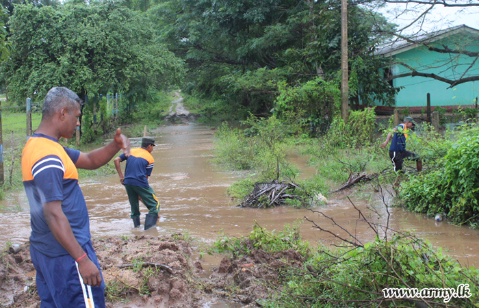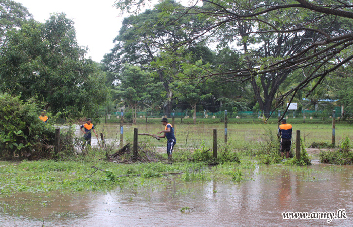 Due to adverse weather conditions in the north Nedunkeni Regional Hospital drainage systems got blocked, posing a health threat. At the request of hospital authorities, troops of 16 Battalion of Sri Lanka Light Infantry (16 SLLI) provided their manpower assistance to clear the blockage and cleaned the entire compound.
