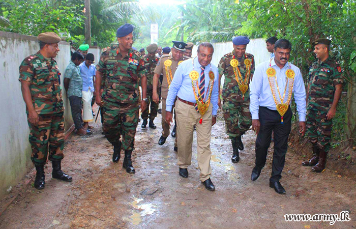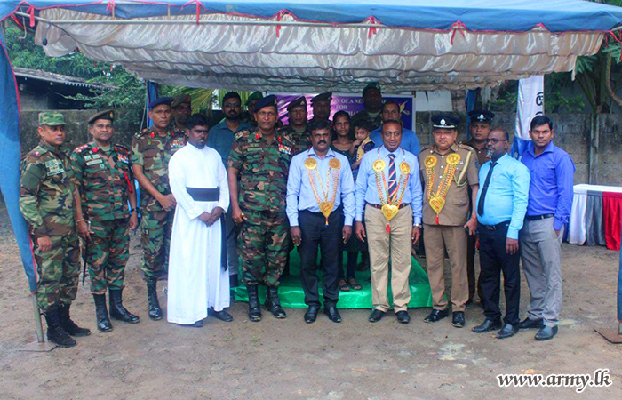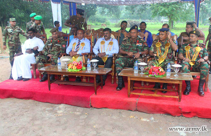 The scheduled programme for the day concluded with planting of a sapling and distribution of dry ration packs to the beneficiaries. This event was attended by Brigade Commanders of 552 and 553 Infantry Brigades, Colonel General Staff of the 55 Infantry Division, Senior Officers, Senior Superintendent of Police Ajith Gunarathne (Rtd), Assistant Superintendent of Police Kilinochchi, Other Invitees and several civilians attended the simple ceremony.