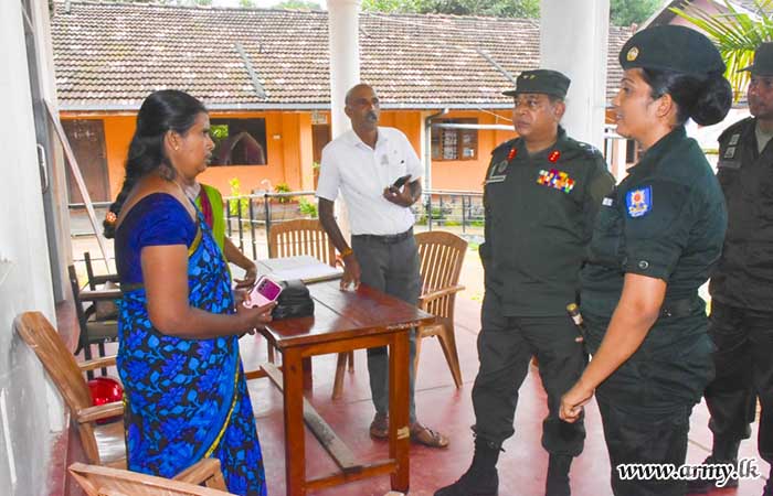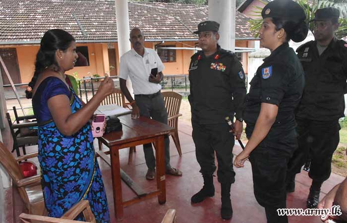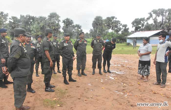 The Commander, Security Forces - Mullativu, Major General M.K Jayawardena USP ndc, in an attempt to assess the developments conducted an observation tour and visited those disaster relief centers, located at Mannakandal Primary College and Pandaravanian College on 19 Dec 2023. During this visit, the Commander inquired about the urgent needs of displaced people and instructed accordingly.