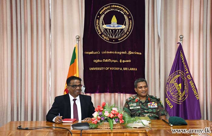 A forum of discussions to explore possibilities for introduction of scientific systems to the agricultural development among farmers in the Wanni region got underway at the University of Vavuniya on 19 December 2023, attended by the Vice Chancellor of the University of Vavuniya, Professor T. Jayasingham, Major General W.P.A.D.W Nanayakkara RSP VSV USP ndu, Commander, Security Forces-Wanni, Experts on Agriculture, Researchers and a host of intellectuals, state officials and undergraduates following graduate courses in agriculture.