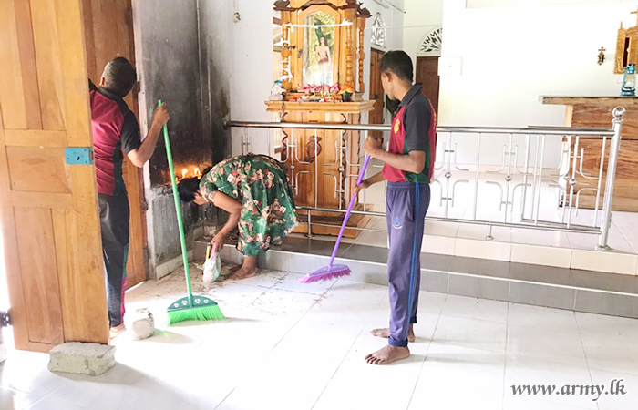 Troops of the 1 Mechanized Infantry Regiment (1 MIR) of the 52 Infantry Division of Security Forces - Jaffna, together with civilians in Mulliyan area launched a cleaning programme in the St Sebastian Church compound in Mulliyan, Iyakkachchi on Thursday (21 Dec) ahead of X'mas.