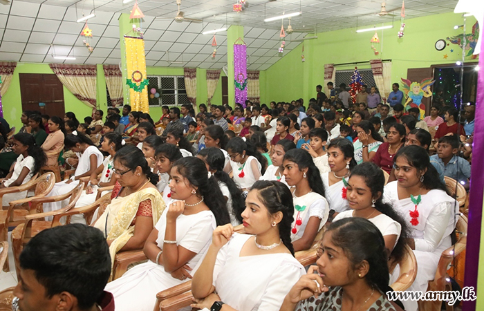To enhance religious harmony and civil - military cooperation among civilians living in Point Pedro area, troops of the 521 Infantry Brigade, together with 4 Sri Lanka Sinha Regiment and 11 Vijayabahu Infantry Regiment troops staged a colourful Christmas Carol programme in the Methodist Girls High School auditorium on Thursday (21 Dec).