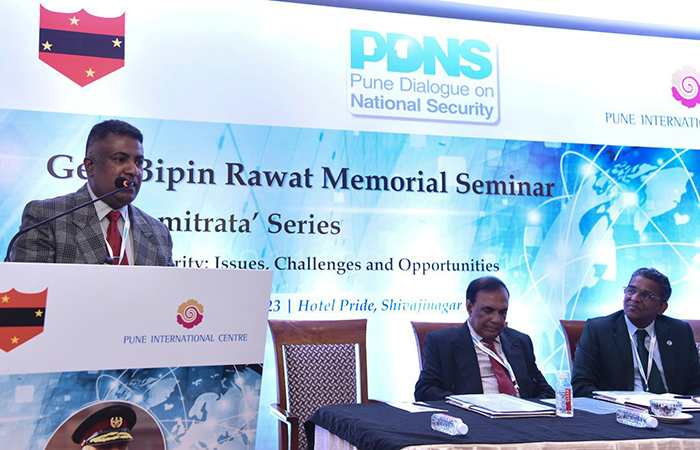 The Director Media of the Ministry of Defence and Director General of the Institute of National Security Studies (INSS) Colonel M.B.B.N Herath RSP, was among the distinguished panel of eminent speakers at late General Bipin Rawat Memorial Seminar, held in Pune, India. The two-day Seminar held on December 18 - 19 saw experts on defence and strategic affairs from Bangladesh, Nepal, Sri Lanka and India share their knowledge and expert insights on the topic ‘Regional Security: Issues, Challenges and Opportunities’.