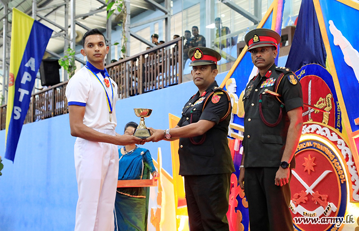The joint awarding event, held at the Panagoda Army Indoor Stadium was attended by Major General K.A.W.N.H Bandaranayake USP, General Officer Commanding of the 14 Infantry Division at the invitation of Colonel B.K.S.L Rodrigo RSP, Commandant, APTC.