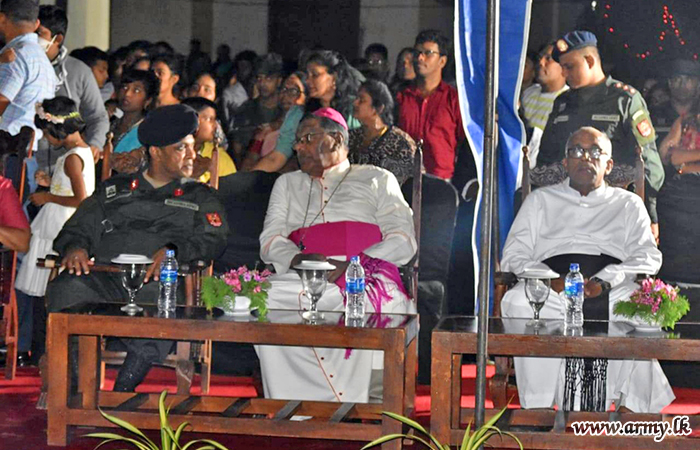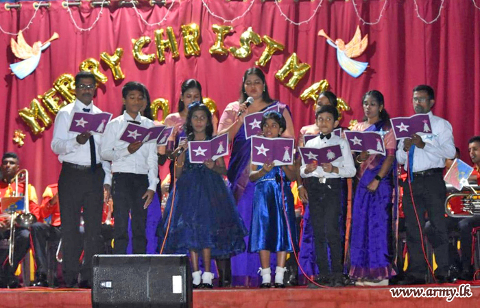 Christmas Carols was composed of a combination of all cultural identities denoting the ethnic and religious harmony in the area. The Carol songs were sung by school Carol teams with the music provided by the Army band. Christian devotees greatly appreciated and commended the efforts of the Sri Lanka Army and more than two thousand people gathered to enjoy the event.