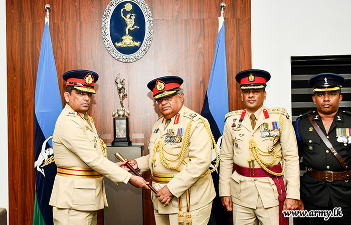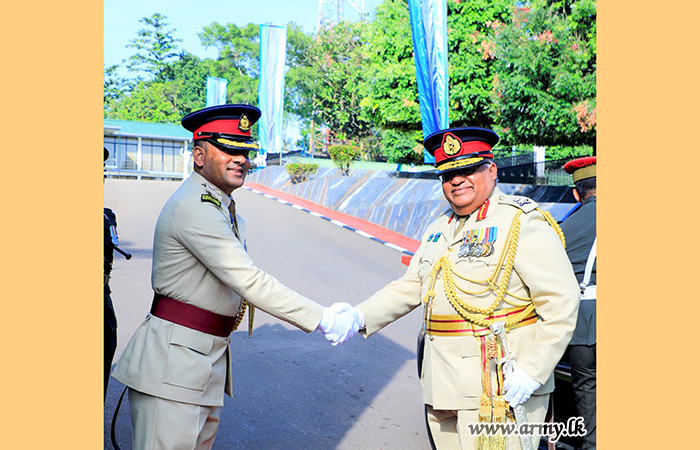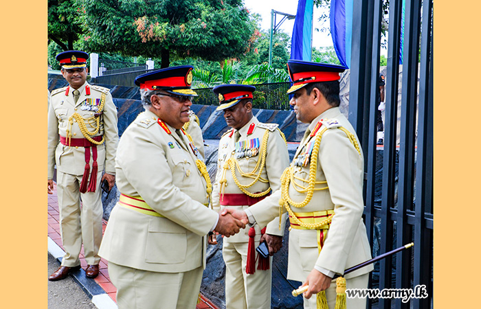Later on, he symbolically handed over the Colonel Commandant’s cane to the incoming Colonel Commandant Major General I.H.M.R.K Herath USP ndc psc at the Colonel Commandant’s Office and penned down some complimentary remarks on the visitor’s book. Soon after, a street lining bade farewell to the retiring Senior Officer.