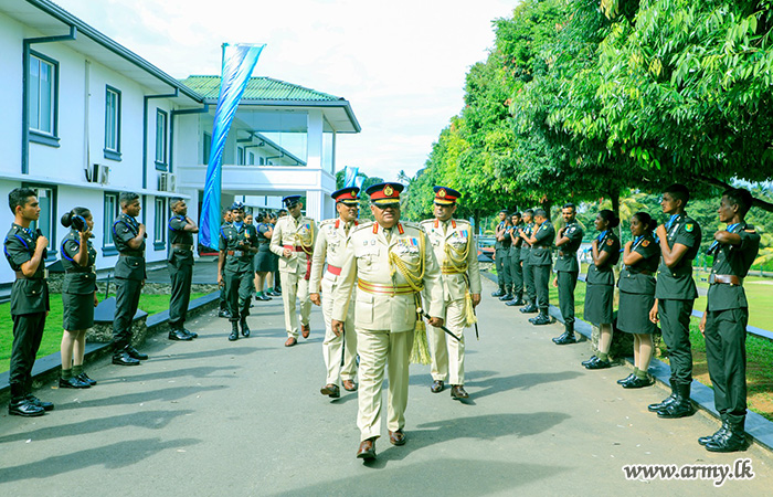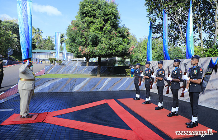 Arriving Senior Officer was warmly welcomed by Brigadier S.J.K.D Jayawardena USP psc, Centre Commandant of SLSC and was greeted with a Guard Turnout at the main entrance. Subsequently, he was invited to pay a flora tribute to SLSC War Heroes’ Monument and was ushered to the parade square to receive the honour of a ceremonial Guard of Honour presented by the SLSC troops.