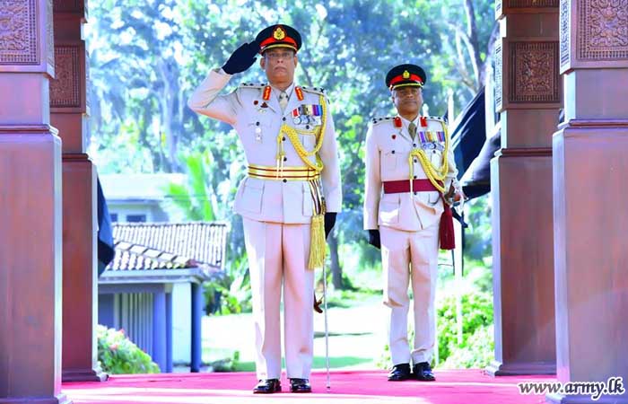 Sri Lanka Sinha Regiment (SLSR) troops arranged a formal ceremony to bid farewell to the former Commandant, Sri Lanka Army Volunteer Force, Colonel of the Regiment Sinha Regiment, Major General U.D Wijesekera RWP RSP USP rcds psc on Saturday (30 Dec) at Regimental Center, Ambepussa.