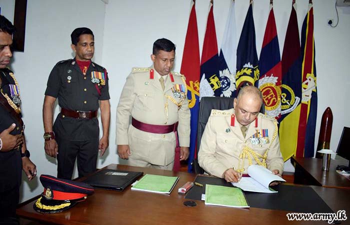 Brigadier T.A. Peiris ptsc, amidst religious observances, symbolically placed his signature on an official document to signify the acceptance of the new office. This occasion was also graced by the participation of staff officers, commanding officers, officers and other ranks.