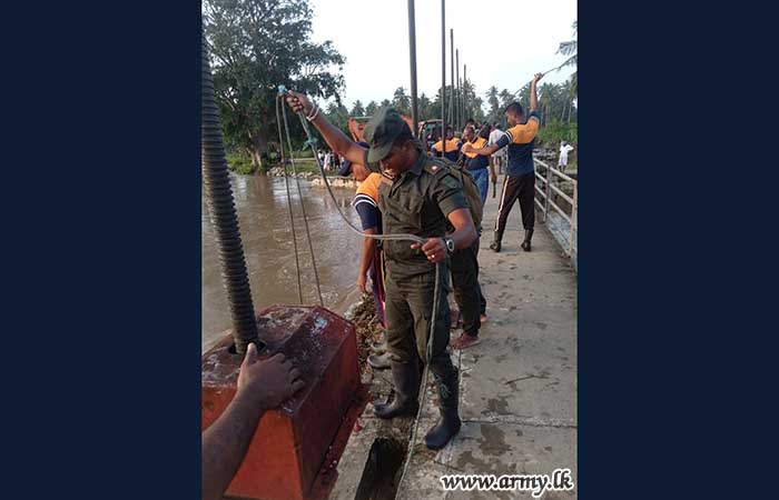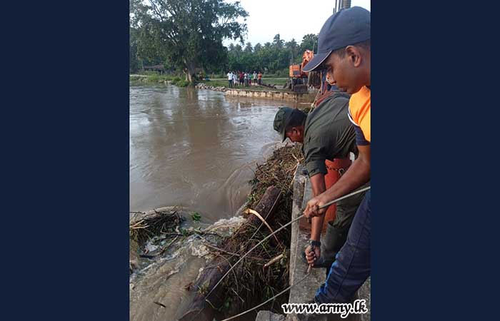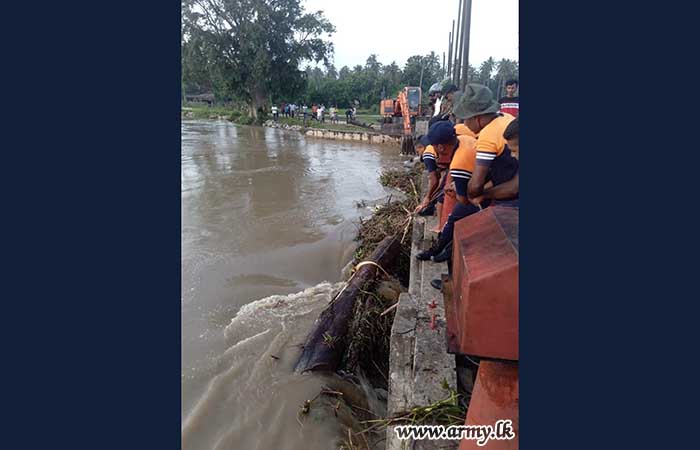 Troops of 241 Infantry Brigade responded to clear the Nainakadu irrigation canal anicut, clogged with timber from torrential rains, and averted the threat of an overflow on Thursday (11 January).