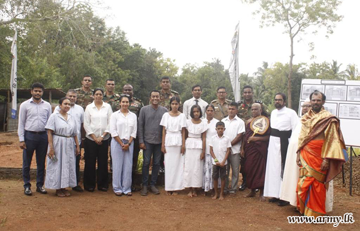 The foundation stone-laid for the construction of three more new houses for needy families living in 221, 222 and 223 Infantry Brigades area in Trincomalee district on 28 and 29 January 2024 during a simple ceremony, amidst religious formalities.
